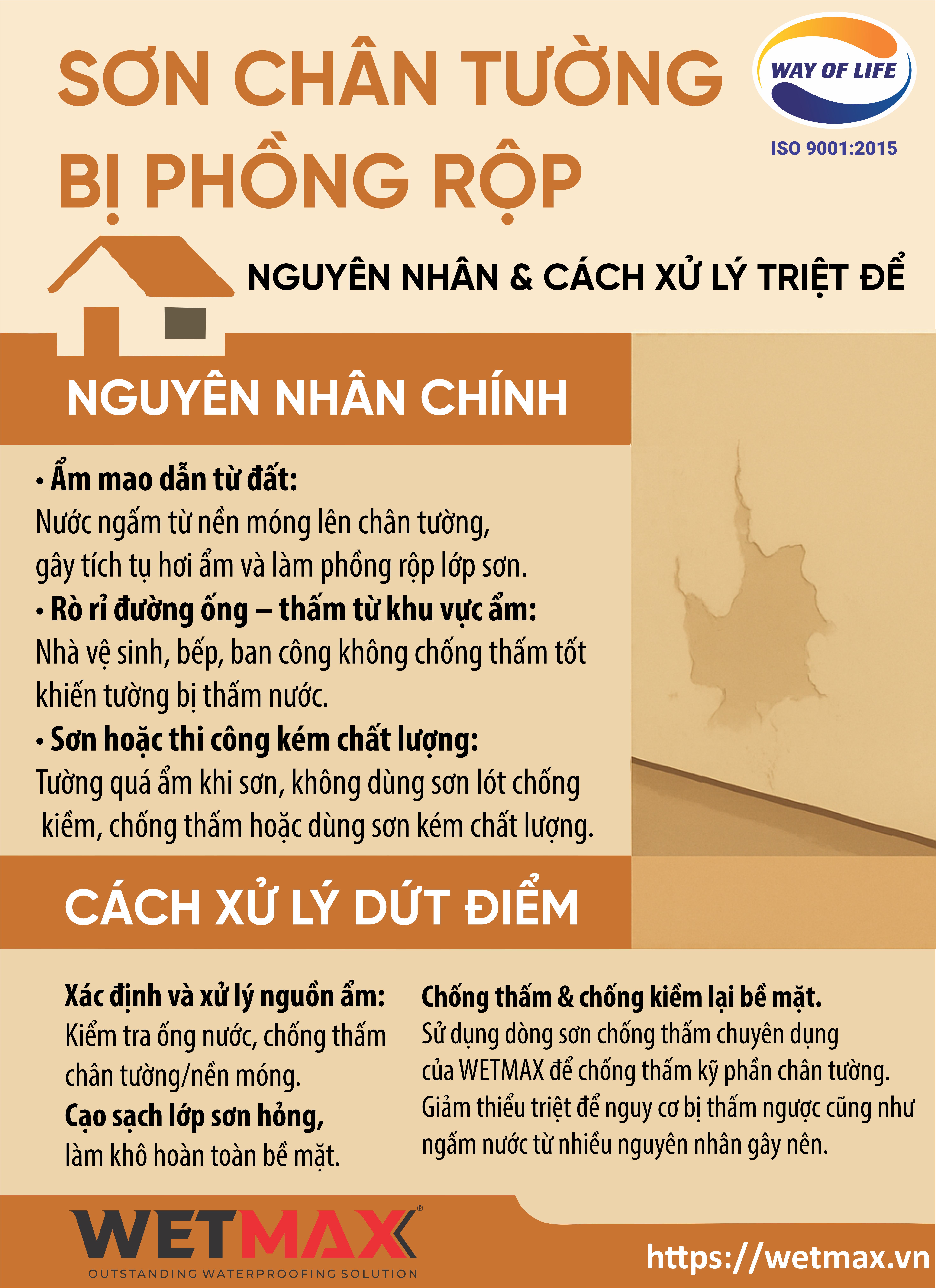 💡 Lời khuyên: Hãy chọn các loại sơn chất lượng cao, có khả năng kháng kiềm và chống thấm tốt để bảo vệ chân tường tốt hơn hoặc sử dụng dòng sơn chống thấm chuyên dụng như WETMAX để giữ cho ngôi nhà của bạn không bị ẩm mốc, tróc tường, phồng rộp không mong muốn.